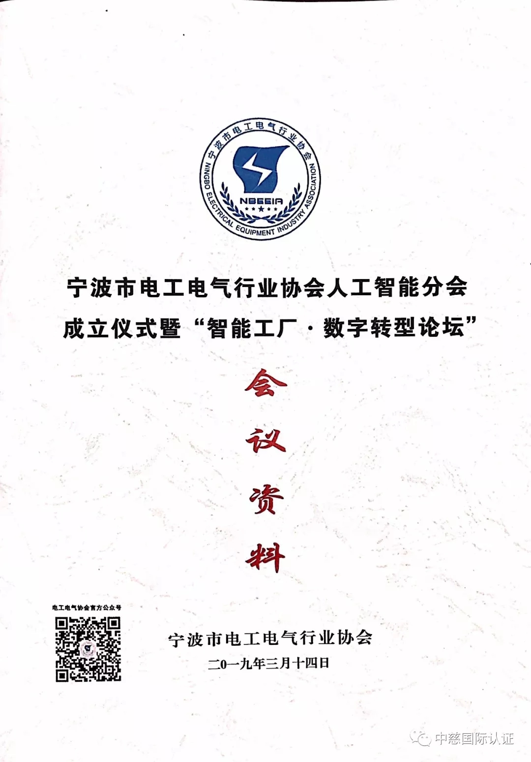 我公司應邀參加寧波市電工電氣行業協會人工智能分會成立儀式暨“智能工廠?數字轉型論壇”