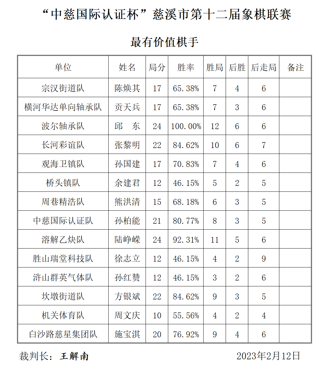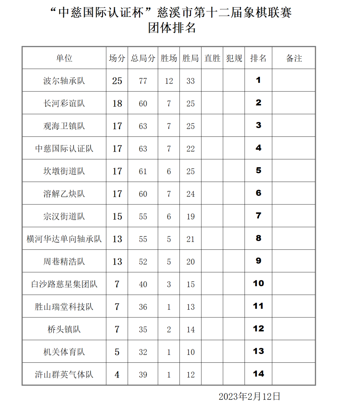 “中慈國(guó)際認(rèn)證杯”慈溪市第十二屆象棋聯(lián)賽圓滿落幕