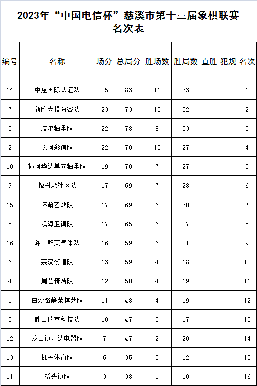 我公司奪得2023年“中國電信杯”慈溪市第十三屆象棋聯賽頭魁